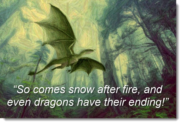 “So comes snow after fire, and even dragons have their ending” ~ J.R.R. Tolkien